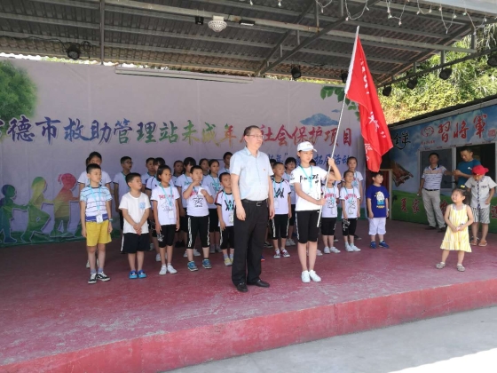 7月17日上午,市救助管理站、市未成年人社会保护中心为期3天的未成年人社会保护项目“阳光少年”暑期素质拓展训练营在花岩溪户外拓展基地正式开营。30余名身处不同困境、学业优秀的受助未成年人(留守儿童)参加了此次活动,他们将在极具趣味性与挑战性的户外体验项目中,接受磨难教育、挫折教育,全面提升心理承受力、行动力、创造力、人格魅力、自我管理能力、感恩心态等。  市救助管理站部分干部职工、未成年人子女参加了此次开营仪式,站长卞德荣现场讲话、授营旗,为受助孩子们加油鼓劲,预祝此次素质拓展活动取得圆满成功。参加此次活动的未成年子女全程观看了庄严的开营仪式,自行为大家表演了唱歌等自娱自乐的节目,这些自小生活在蜜罐中的孩子也充分感受到困境未成年人(留守儿童)身上不畏苦难、积极向上的昂扬斗志,受到了一次很好的教育。(高明英)