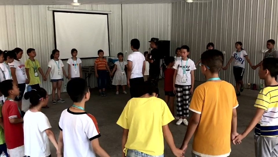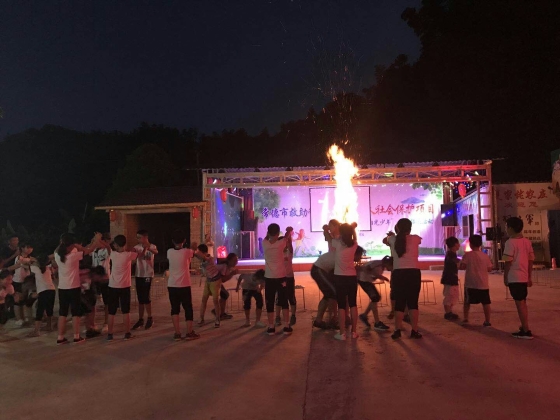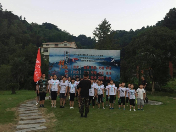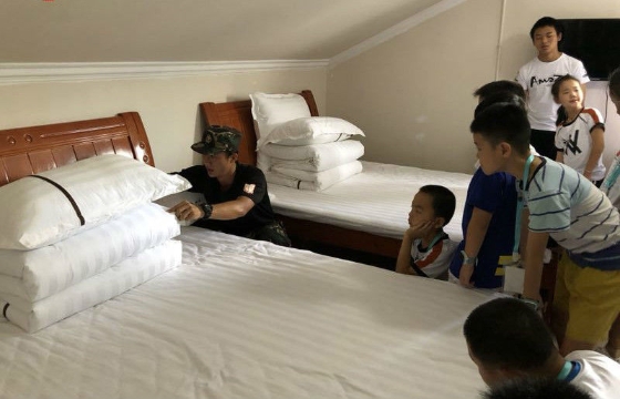 救助管理站站长授营旗 第一天,教官对同学们开展了军事训练、内务整理、餐桌礼仪等常规性训练,还开展了野炊活动,让孩子们自己动手制作饭菜,旨在提高同学们的纪律性、规则性和生活自理能力。晚上,篝火晚会点燃了孩子们的热情,同学们在篝火的映照下,一起唱歌、跳舞、做游戏,很快融入了集体。 教练指导整理内务,被子叠成豆腐块 篝火晚会,同学们一起做游戏 第二天,在清晨的鸟鸣水涧声中,同学们开始了晨练,一天的活动安排很丰富,有素质拓展、军事训练、团队动力圈、穿越电网等游戏,晚上还有杯子舞的学习,旨在提高同学们的团队合作精神。第三天,开展了感恩教育,教诲同学们要感恩父母、感恩老师、感恩同学,只有感恩才会珍惜、才会承担、才会行动、才会相信。 户外拓展训练  感恩教育,同学们体会到了父母的不易,流下了泪水